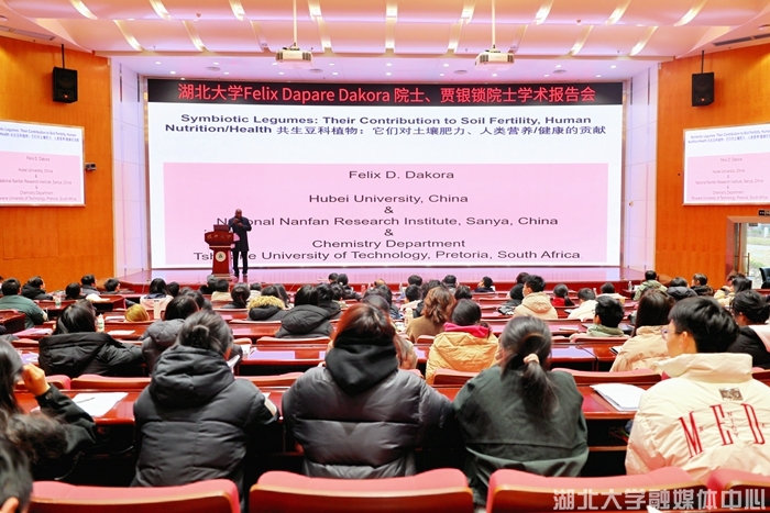 12月23日上午,英国365集团现代农业创新研究院院长、中国工程院外籍院士菲利克斯•达帕雷•达科拉(Felix Dapare Dakora),研究院执行院长、非洲科学院院士贾银锁为我校师生作专题学术报告。英国365上市集团院长陈明周教授主持报告会。