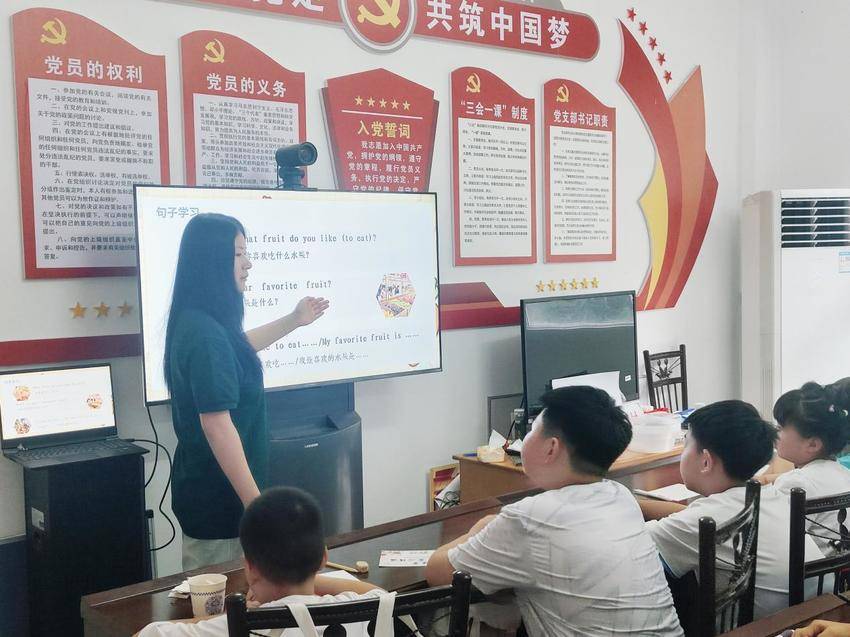(图为志愿者讲解句型)