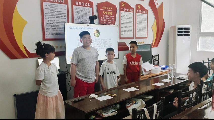 华镇桃坪村的课堂上,志愿者以“Where is my fruit?”游戏拉开序幕。学生藏匿苹果、香蕉等水果后,参与者限时寻找,其他同学则根据距离远近调整音量,用对应英文单词提示。“Apple!Apple!”随着音量渐强,学生很快锁定目标,真正实现了“在学中玩,在玩中学”。